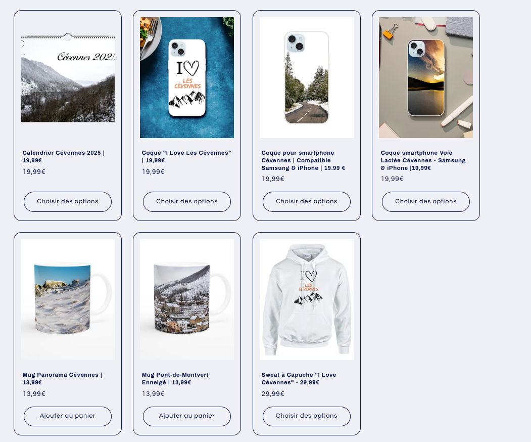 Découvrez notre collection Cévennes, alliant fonctionnalité et beauté naturelle. Mugs, tasses, calendriers 2025 et coques pour smartphones Apple et Samsung, tous ornés de photographies saisissantes des Cévennes par Benjamin Polge.